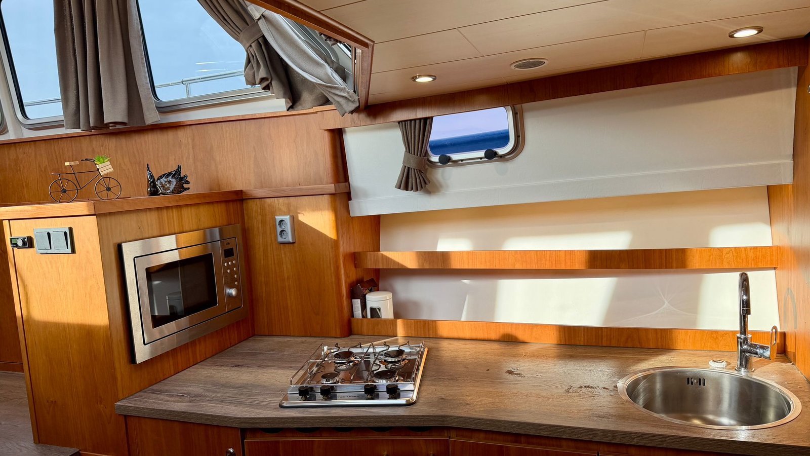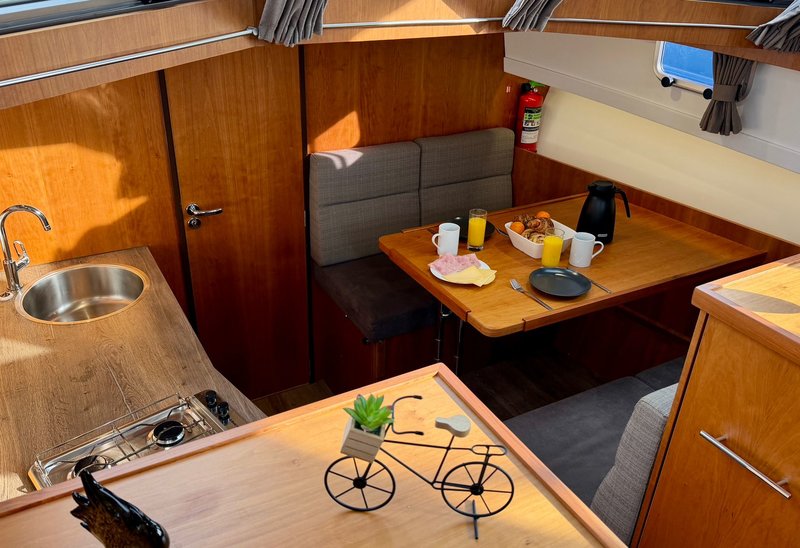 Die Küche ist praktisch eingerichtet und für den täglichen Gebrauch während des Bootsurlaubs bestens geeignet. Das Badezimmer verfügt über Toilette, Waschbecken und Dusche. Warmwasser und Heizung sorgen auch bei kühlerem Wetter für angenehmen Komfort an Bord.